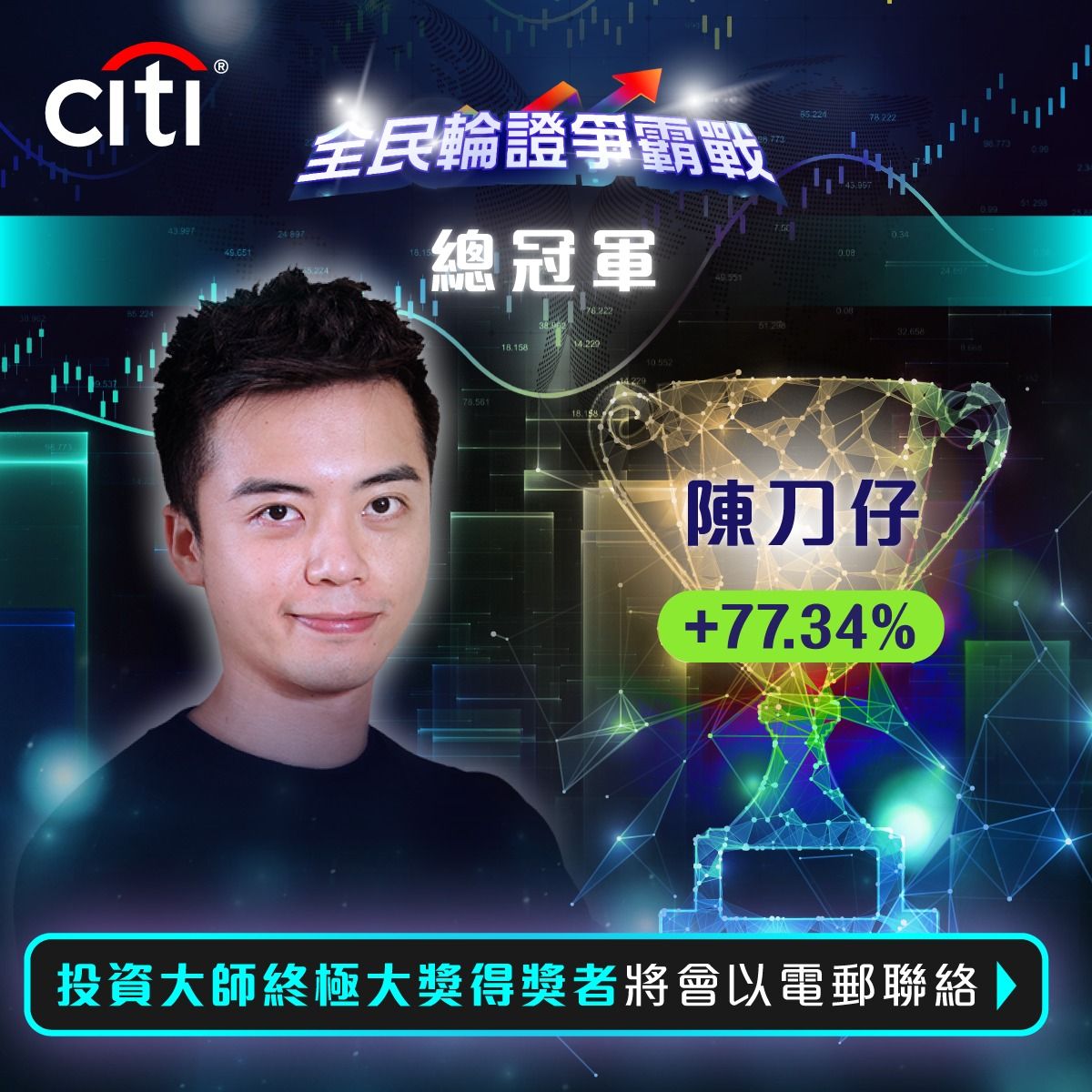 - 花旗銀行全民輪証爭霸戰總冠軍 , 單月回報77%